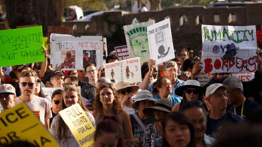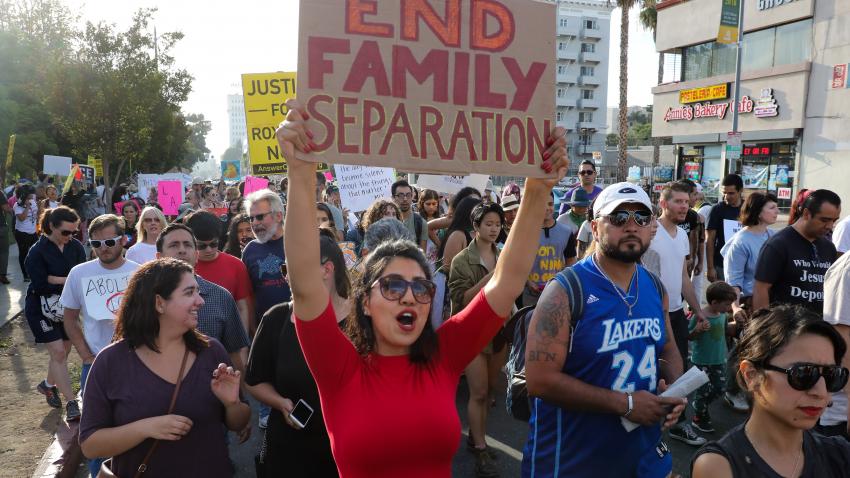 Στο Λος Άντζελες των ΗΠΑ πραγματοποιούνται διαδηλώσεις ενάντια στην πολιτική Τραμπ για το μεταναστευτικό. Οι διαδηλωτές αντιδρούν για τον χωρισμό οικογενειών των οποίων κάποια μέλη απελαύνονται.