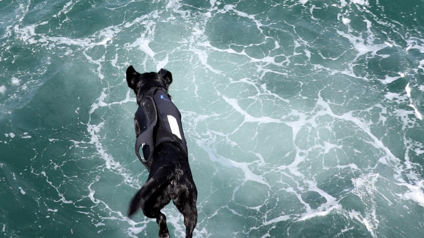 Στη Νότια Κορέα ένας σκύλος labrador retriever, ο Τούτου, πηδάει στη θάλασσα στη διάρκεια εκπαίδευσης για να γίνει ο πρώτος ναυαγοσώστης της χώρας.