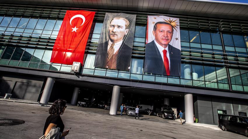 Μερικά 24ωρα πριν τις κάλπες στην Τουρκία και στο κτίριο του υπό ανέγερση νέου αεροδρομίου της Κωνσταντινούπολης μπορεί κανείς να δει..ποιον άλλο…τον Ερντογάν δίπλα από τον Κεμάλ Ατατούρκ.