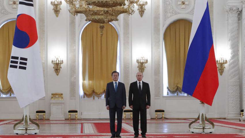 Όπως γράψαμε ήδη σε άλλο άρθρο μας ο Βλαδιμίρ Πούτιν αξιοποιεί στο έπακρο την παρουσία ξένων ηγετών στη χώρα του οι οποίοι μεταβαίνουν για να παρακολουθήσουν τους αγώνες του μουντιάλ. Στη φωτογραφία με τον ηγέτη της Νοτίου Κορέας Moon Jae-in.