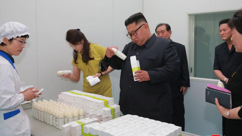 Ο Κιμ Γιογκ Ουν εμφανίζεται πλέον συχνότερα…εδώ τον βλέπουμε σε φωτογραφία μαζί με τη σύζυγο του Ri Sol Ju να επισκέπτεται εργοστάσιο παραγωγής καλλυντικών στην Πιονγιαγκ.