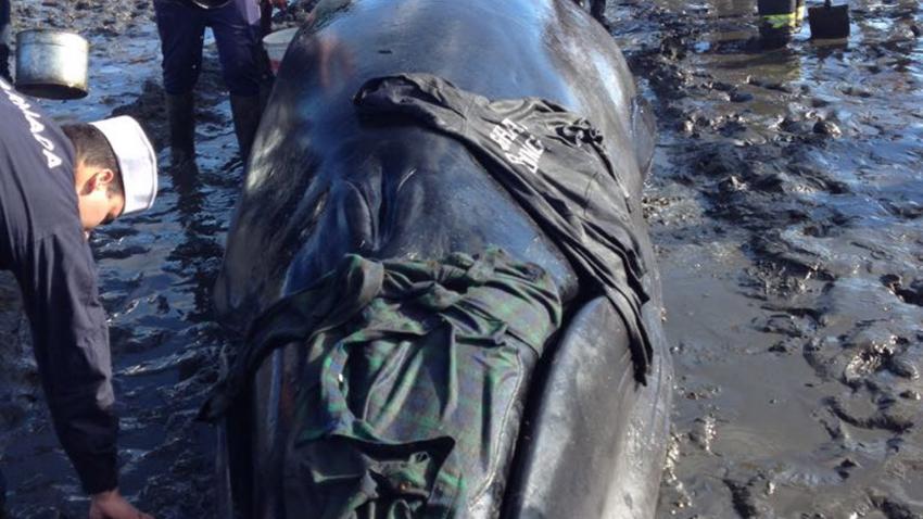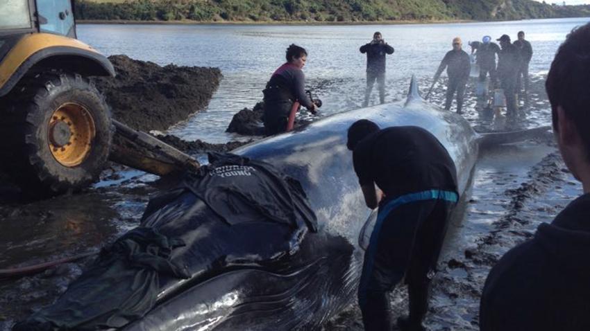 Στη Χιλή οι αρχές κατάφεραν να διασώσουν μία φάλαινα που έχασε το δρόμο της και βγήκε στην παραλία.