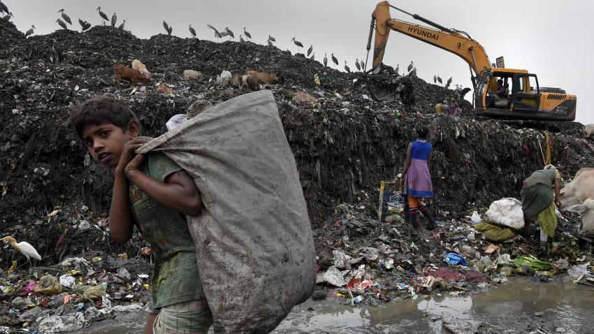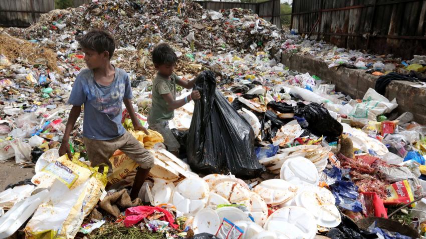 Παραμονές της Παγκόσμιας Ημέρας περιβάλλοντος η οποία φέτος φιλοξενείται στην Ινδία. Το μήνυμα της φετινής επετείου είναι η μόλυνση του περιβάλλοντος από πλαστικά απόβλητα. Στη φωτογραφία παιδάκια συλλέγουν από ένα σκουπιδότοπο στην Ινδία επαναχρησιμοποιήσιμα σκουπίδια…..