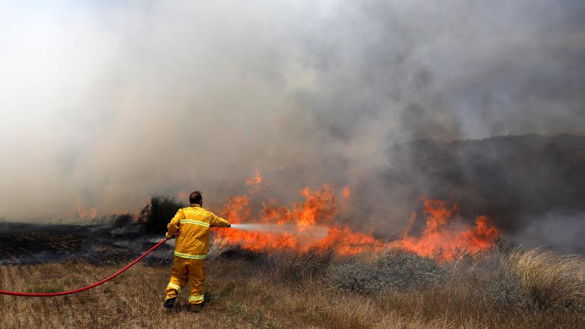 Πυροσβέστες από το Ισραήλ επιχειρούν να σβήσουν πυρκαγιές που ξέσπασαν σε χωράφια στη Λωρίδα της Γάζας από βόμβες μολότοφ που πέταξαν Παλαιστίνιοι διαδηλωτές.