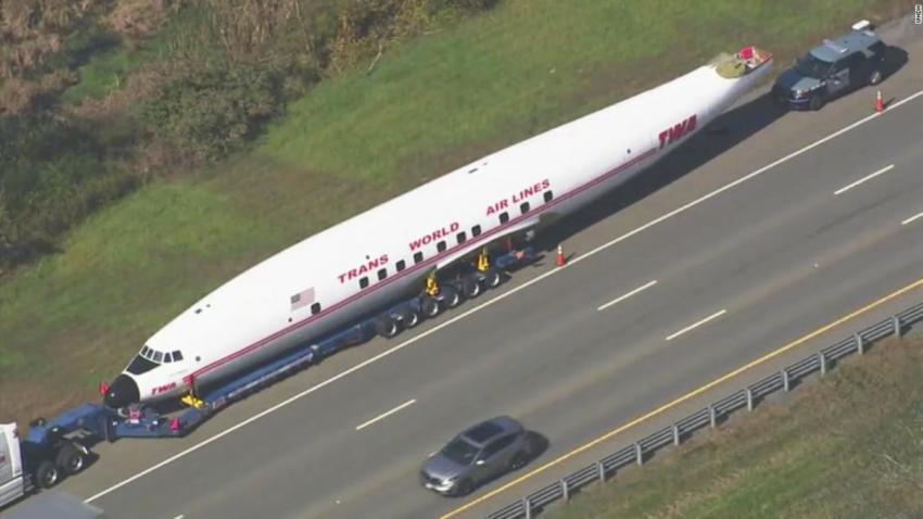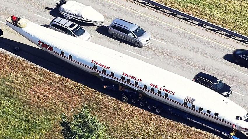 Συγκεκριμένα μεγάλο αρθρωτό όχημα μετέφερε ένα παλιό αεροσκάφος τηςαεροπορικής εταιρείας ΤWA από το Μέιν στη Νέα Υόρκη, με σκοπό να μετατραπεί σε cocktail bar σε ξενοδοχείο της πόλης.