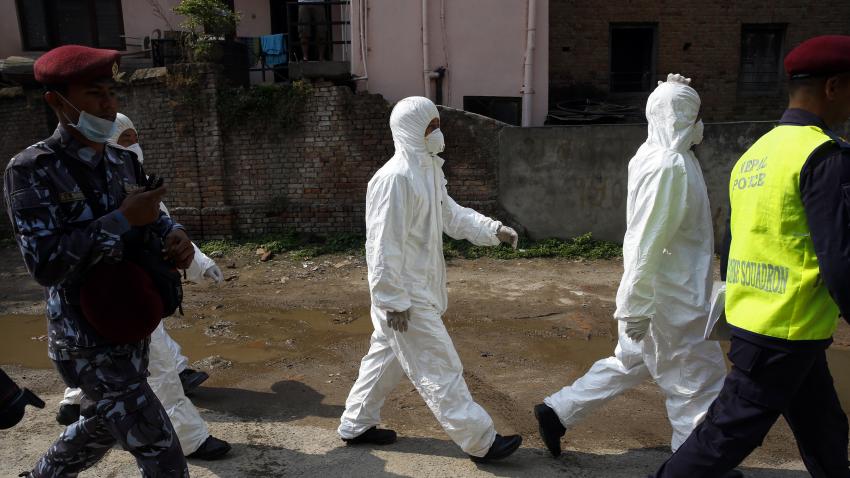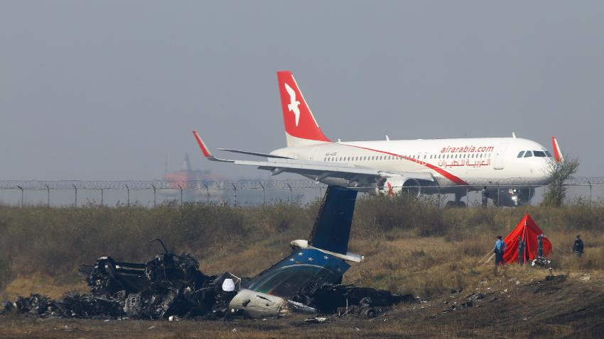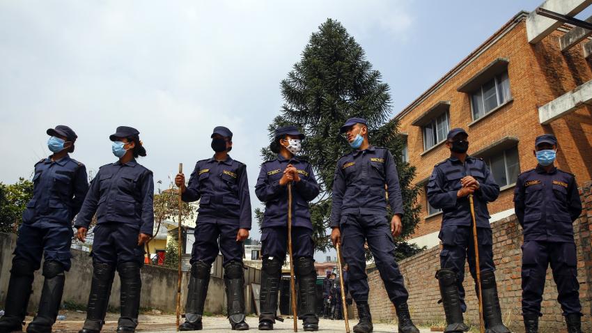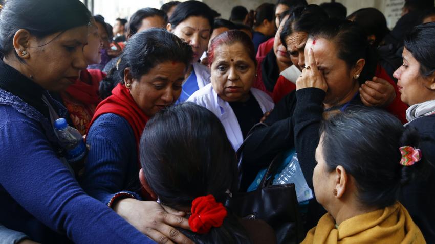 Μέλη της Αστυνομίας του Νεπάλ φρουρούν το νοσοκομείο όπου νοσηλεύονται οι επιζώντες του αεροπορικού δυστυχήματος. Ένα αεροσκάφος της εταιρείας του Μπαγκλαντές US-Bengla με 71 επιβάτες συγκρούστηκε στην προσπάθεια του να προσγειωθεί. 49 άνθρωποι σκοτώθηκαν και 22 επέζησαν.
