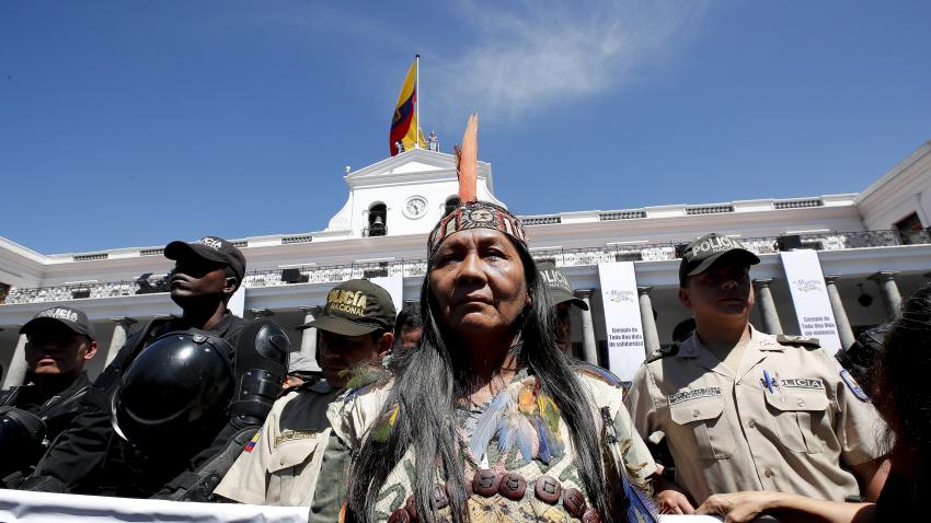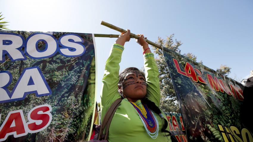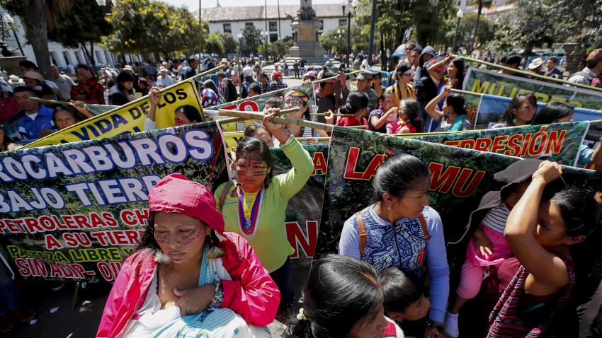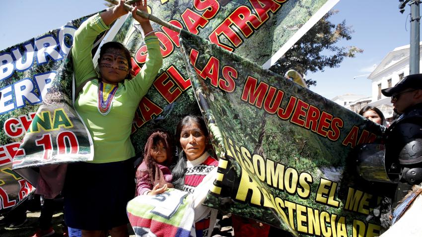 Γυναίκες από που ζουν στον Αμαζόνειο του Εκουαδόρ, διαδηλώνουν ενάντια στην επέκταση των εξορύξεων πετρελαίου και των λατομείων στη ζούγκλα.