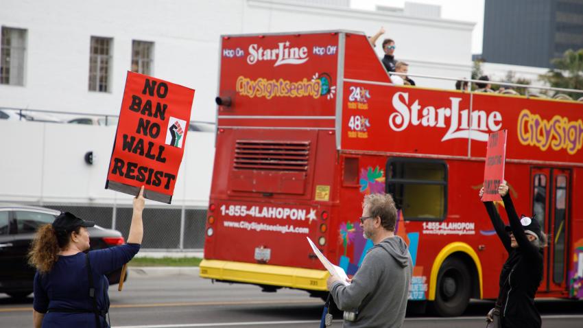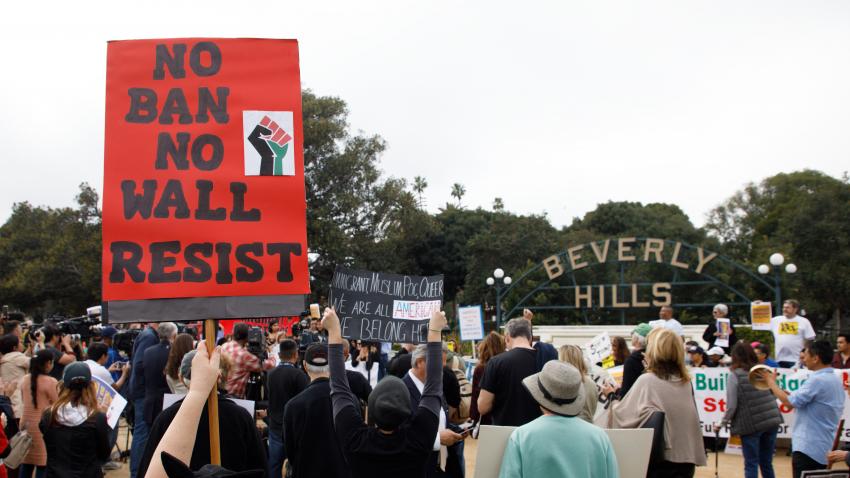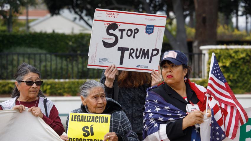 Oργανώσεις που διεκδικούν τα δικαιώματα των μεταναστών στις ΗΠΑ, διαδηλώνουν λίγο πριν την άφιξη του Ντόναλτ Τραμπ στο Μπέβερλι Χιλς της Καλιφόρνια. Ο Αμερικανός Πρόεδρος αναμένεται να παρακαθίσει σε φιλανθρωπικό δείπνο λίγο μετά την επίσκεψη του στο Σαν Ντιέγκο για να επιθεωρήσει τα έργα για ανέγερση του τοίχους στα σύνορα με το Μεξικό.
