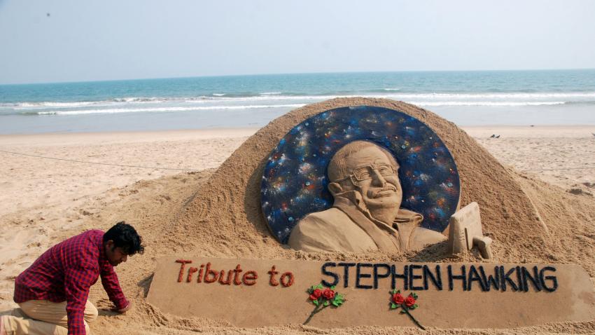 Ο Ινδός καλλιτέχνης Sudarsan Pattnaik, δημιουργεί ένα άγαλμα στον άμμο προς τιμή του Βρετανού Φυσικού Στέφεν Χόκιγκ ο οποίος έφυγε σήμερα από τη ζωή σε ηλικία 76 ετών αφήνοντας ένα τεράστιο κενό για την παγκόσμια επιστημονική κοινότητα.