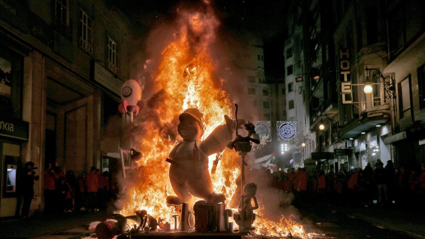 Στη Βαλένθια της Ισπανίας γιορτάζουν το φεστιβάλ Las Fallas. Οι διαγωνιζόμενοι κατασκευάζουν ξύλινα αγάλματα και μετά από ψηφοφορία το καλύτερο άγαλμα είναι αυτό που δεν θα του βάλουν φωτιά.
