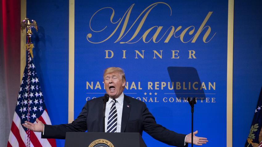 Ο Αμερικανός Πρόεδρος Ντόναλτ Τραμπ μιλά ενώπιον της Εθνικής Συνέλευσης των Ρεπουμπλικανών στην Ουάσιγκτον.