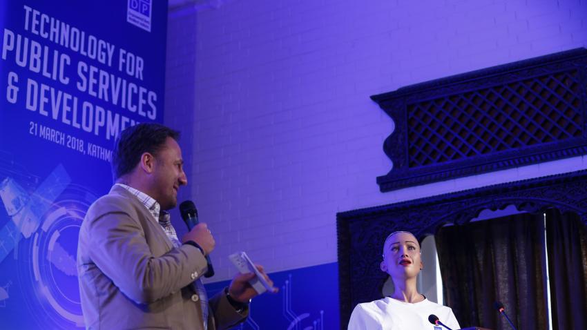 To ανθρωποειδές ρομπότ Sophia είναι ομιλητής σε συνέδριο του Οργανισμού Ηνωμένων Εθνών για την βιώσιμη ανάπτυξη στο Νεπάλ. Το συνέδριο επικεντρώνεται στην καινοτομία. Η Sophia είναι δημιούργημα της εταιρείας του Χονγκ Κονγκ Hanson Robotics και είναι το πρώτο ρομπότ στον κόσμο που έχει λάβει υπηκοότητα της Σαουδικής Αραβίας. Πρόκειται για ένα ρομπότ με τεχνητή νοημοσύνη.