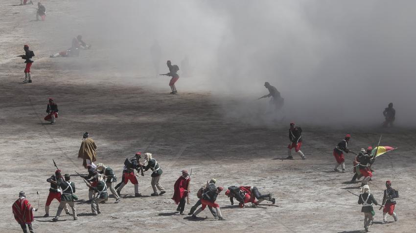 Ο στρατός της Βολιβίας προβαίνει σε αναπαράσταση της νίκης έναντι της Χιλής πριν από 139 χρόνια στο πλαίσιο του πολέμου του Ειρηνικού. Μετά τον πόλεμο η Βολιβία έχασε την πρόσβαση της στη θάλασσα.