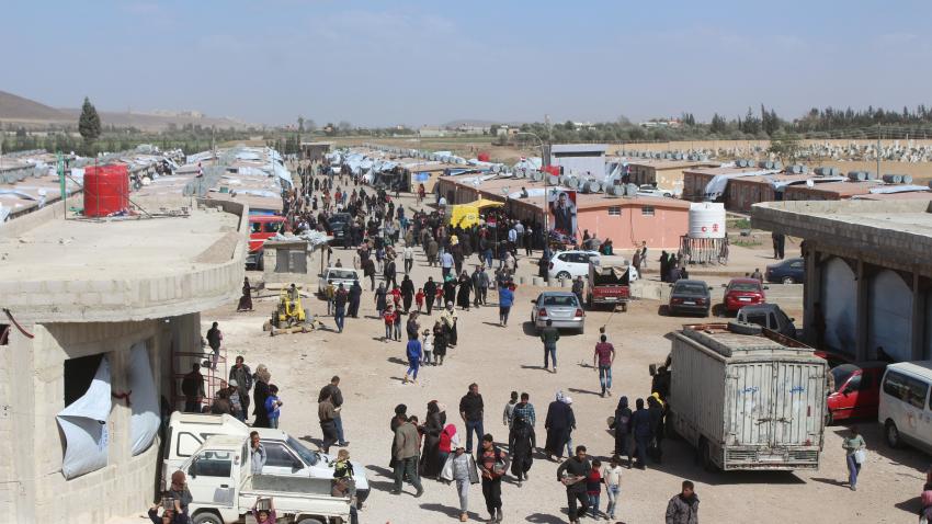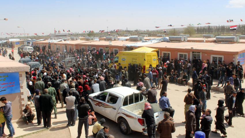 Πρόσφυγες από την Ανατολική Γούτα της Συρίας προσεγγίζουν τη Δαμασκό για να βρουν στέγη σε καταυλισμό. Τουλάχιστον 135.000 άνθρωποι εγκατέλειψαν τις εστίες τους μετά την έναρξη των επιχειρήσεων στην περιοχή.