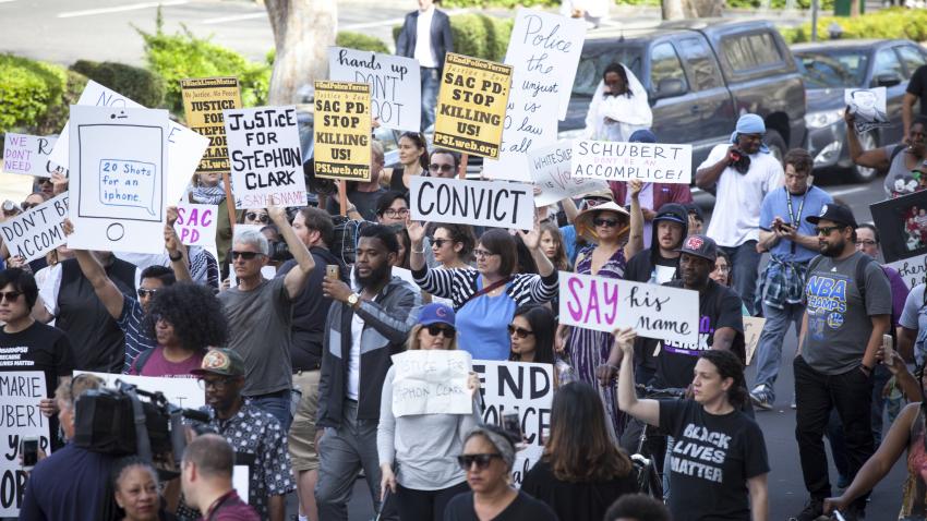 Στην Καλιφόρνια των ΗΠΑ μέλη της οργάνωσης Black Lives Matter διαδηλώνουν στους δρόμους μετά την κηδεία του Stephon Clark, ο οποίος έχασε τη ζωή του από πυρά αστυνομικών στην αυλή του σπιτιού της γιαγιάς του. Ήταν άοπλος.
