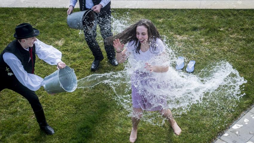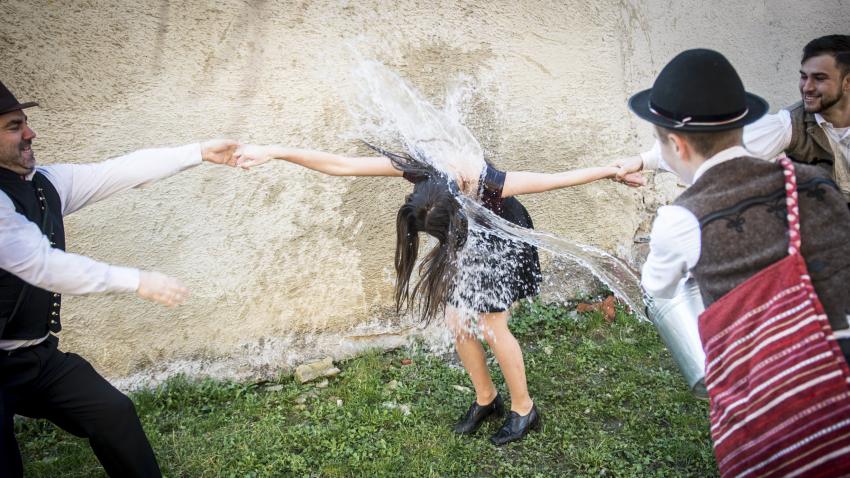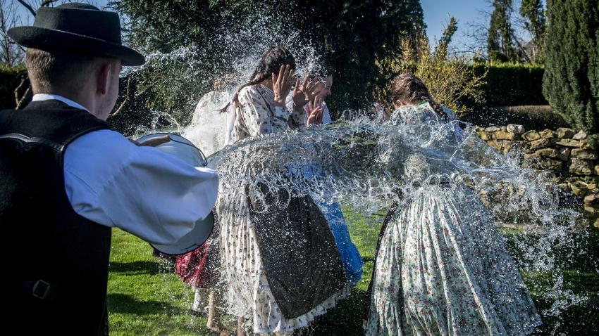 Mέλη παραδοσιακής σχολής στη Βουδαπέστη ζουν τα έθιμα του τόπου τους. Σύμφωνα με την παράδοση η οποία τηρείται εδώ και εκατοντάδες χρόνια, νεαροί άντρες πετούν νερά σε νεαρές γυναίκες οι οποίες προηγουμένως έβαψαν τα αυγά τους για το Πάσχα. Το ονομάζουν Υγρή Δευτέρα.