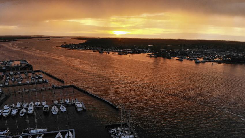 Το ηλιοβασίλεμα από drone στη μαρίνα του Wolphaartsdijk της Ολλανδίας.