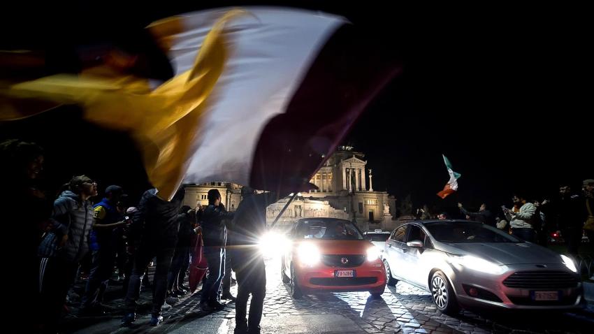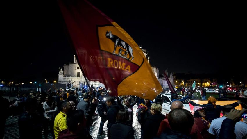 Στη Ρώμη οπαδοί της Roma βγαίνουν στους δρόμους για να πανηγυρίσουν την τεράστια επιτυχία της ομάδας τους που προκρίθηκε επί της Barcelona στο Champions League.