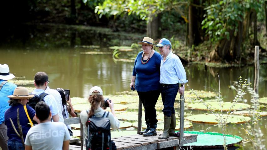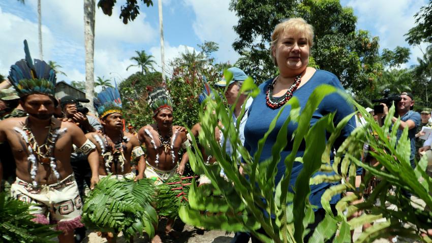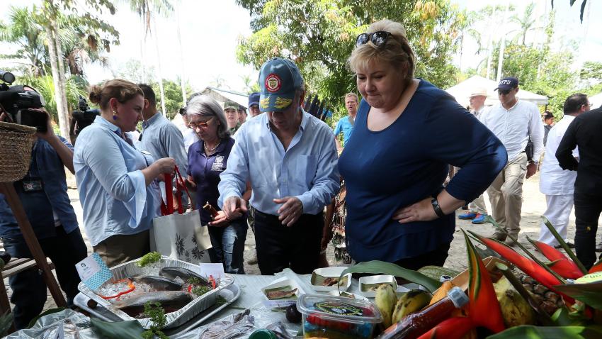 Ο Πρόεδρος της Κολομβίας και η Πρωθυπουργός της Νορβηγίας συναντούν στην Λετίσια ιθαγενείς που ζουν στην περιοχή.