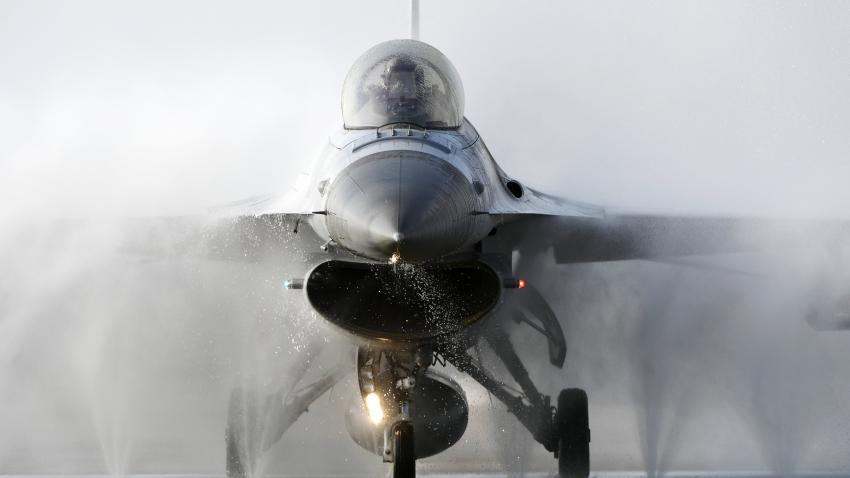 Στην πιο κάτω φωτογραφία τεχνικοί της νοτιοκορεατικής πολεμικής αεροπορίας πλένουν ένα αεροσκάφος KF-16 στη Βάση Seasan.