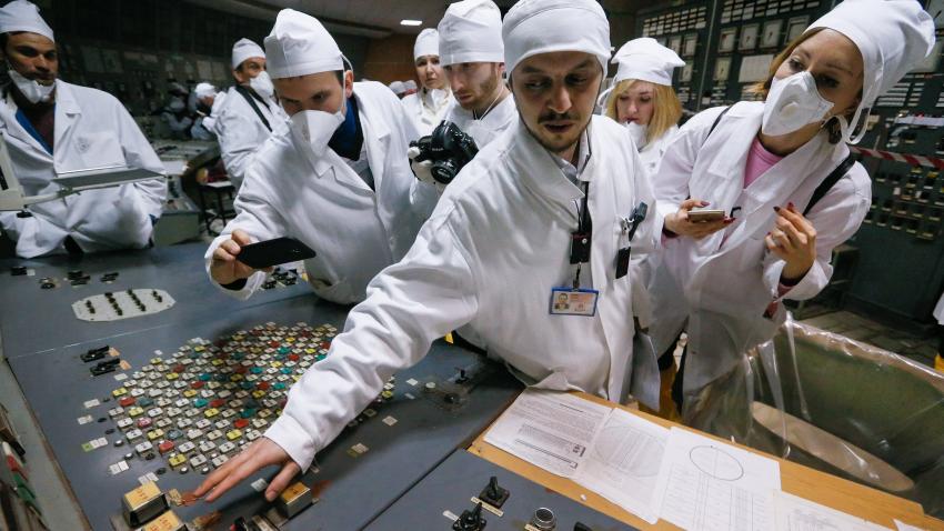 Επέτειος της τραγικής έκρηξης στο Τσέρνομπιλ και υπάλληλοι εξηγούν σε επισκέπτες και δημοσιογράφους πώς έγινε το τραγικό ατύχημα. Μέχρι και σήμερα θεωρείται το μεγαλύτερο πυρηνικό ατύχημα στην ιστορία. Στις 26 Απριλίου θα συμπληρωθούν 32 χρόνια.