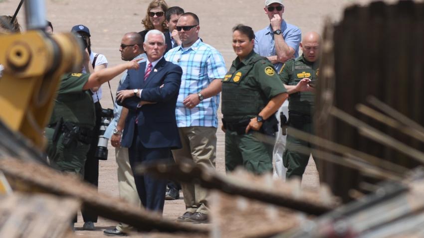 Ακτιβιστές διαδηλώνουν κατά του τοίχους που χτίζει ο Ντόναλτ Τραμπ στα σύνορα με το Μεξικό στη διάρκεια επιθεώρησης που έγινε από τον Αμερικανό Αντιπρόεδρο Μάικ Πενς.