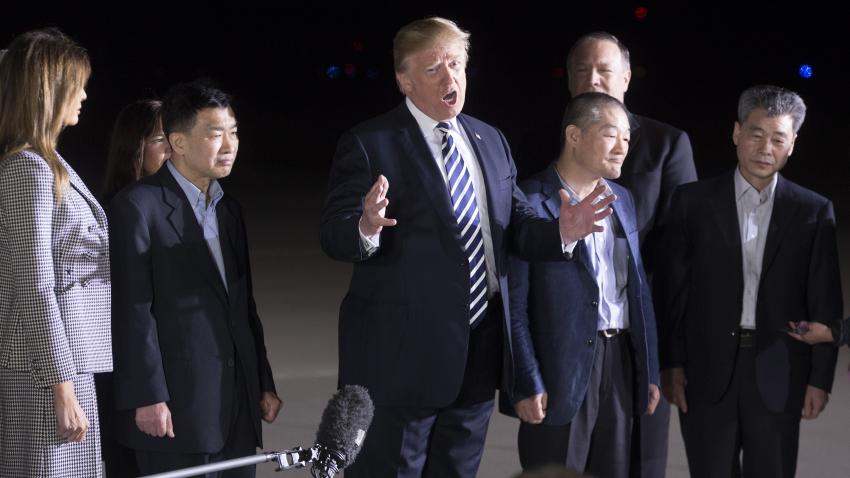 O Aμερικανός Πρόεδρος Ντόναλτ Τραμπ μεταβαίνει στην στρατιωτική βάση Andrews για να υποδεχθεί τους τρεις Αμερικανούς κρατούμενους που αφέθηκαν ελεύθεροι από το καθεστώς της Βορείου Κορέας. Πρόκειται για κίνηση καλής θελήσεως ενόψει της επίσκεψης Τραμπ στη χώρα και της συνάντησης που θα έχει με τον Κιμ Γιογκ Ουν.