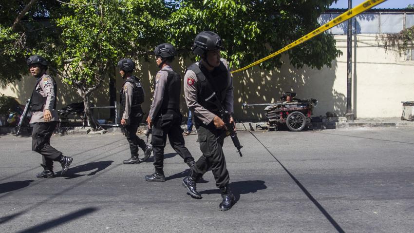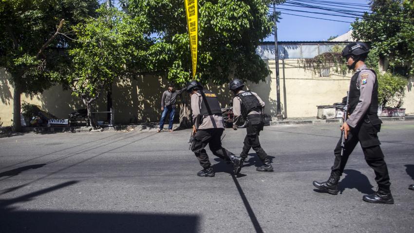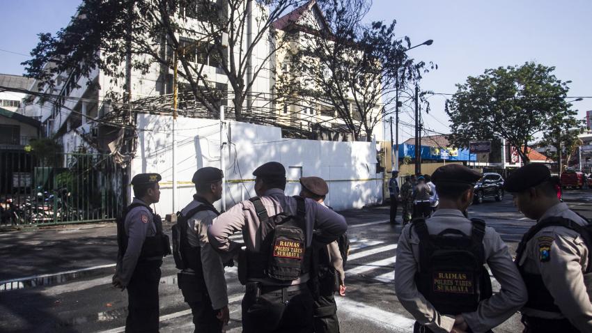 Η Αστυνομία της Ινδονησίας ασφαλίζει την περιοχή γύρω από τον κεντρικό αστυνομικό σταθμό της Surabaya μετά από έκρηξη. Τουλάχιστον τέσσερα μέλη της Αστυνομίας και έξι πολίτες τραυματίστηκαν από την έκρηξη. Προηγουμένως εκρήξεις σημειώθηκαν σε εκκλησίες…13 άνθρωποι έχασαν τη ζωή τους.