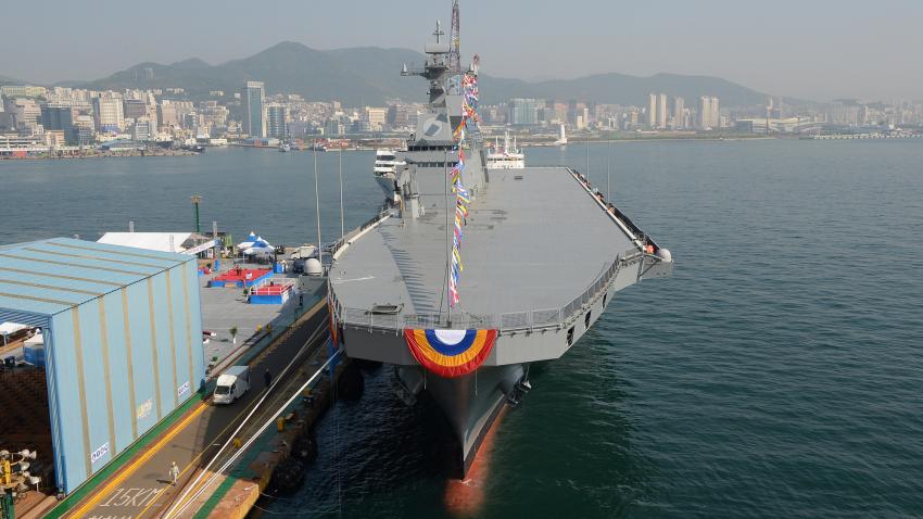 Στην πιο κάτω φωτογραφία βλέπεται το ολοκαίνουργιο αμφίβιο επιθετικό σκάφος της Νοτίου Κορέας. Το 14,500 τόνων πλοίο είναι το δεύτερο μεγαλύτερο της χώρας και μεταφέρει ειδικά οχήματα και ταχύπλοα.