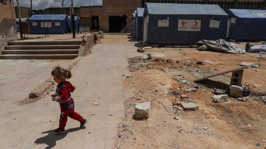 Στη φωτογραφία παιδάκια παίζουν σε καταυλισμό προσφύγων που αναγκάστηκαν να εγκαταλείψουν τα σπίτια τους λόγω των συγκρούσεων στην Ανατολική Γούτα της Συρίας. Ο καταυλισμός βρίσκεται στην πόλη Atarib.