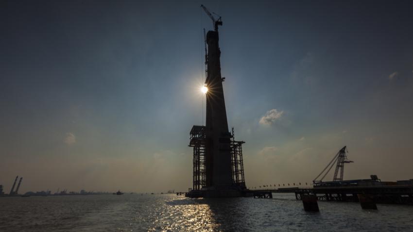 Στη φωτογραφία βλέπετε τον ένα από τους πύργους που θα στηρίξουν την νέα “υπερ-γέφυρα” της Κίνας στην επαρχία Jiangsu. Αναμένεται ότι θα ολοκληρωθεί εντός του 2019. Κάθε πυλώνας έχει ύψος 325 μέτρα. Είναι η υψηλότερη στον κόσμο.