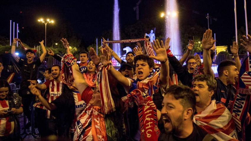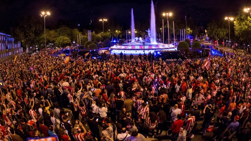 Στη Μαδρίτη υποστηρικτές της Ατλέτικο μαζεύονται στην πλατεία Neptuno για να πανηγυρίσουν την κατάκτηση του Europa League σε βάρος της Aτλέτικο.