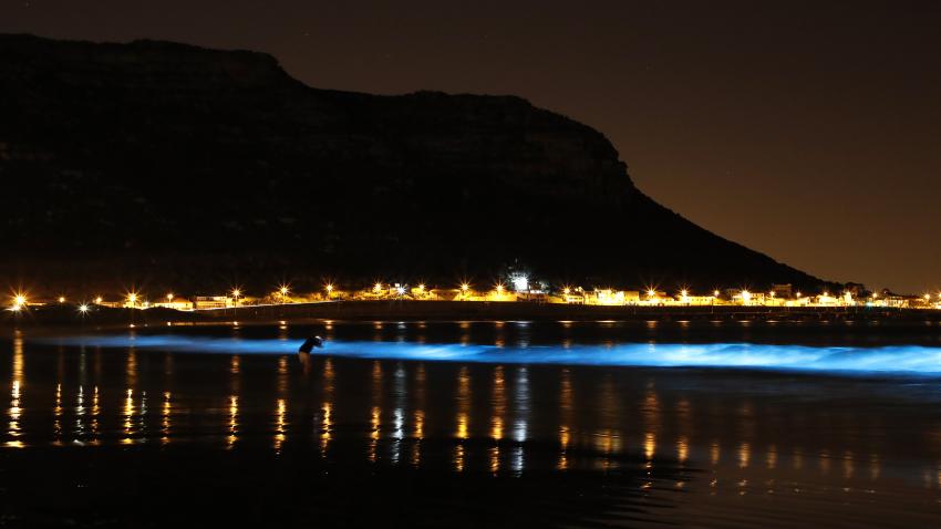 Στον κόλπο του Fish Hoek στο Κέιπ Τάουν της Νοτίου Αφρικής ένα σπάνιο φαινόμενο κάνει την εμφάνιση του. Μεγάλοι αριθμοί βιοφωταύγειας διφωσφορούχων δημιουργούν το φωσφορισμό στο σπάσιμο των κυμάτων. Πρόκειται για φαινόμενο που είναι πιο συνηθισμένο σε τροπικές περιοχές…Το φαινόμενο εμφανίζεται με φωτεινό μπλε χρώμα…