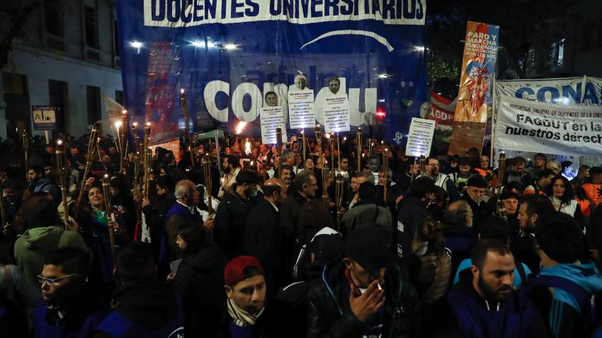 Xιλιάδες καθηγητές και φοιτητές Πανεπιστημίων της Αργεντινής διαδήλωσαν ενάντια στις πολιτικές της κυβέρνησης Macri στην χώρα ζητώντας καλύτερους μισθούς.