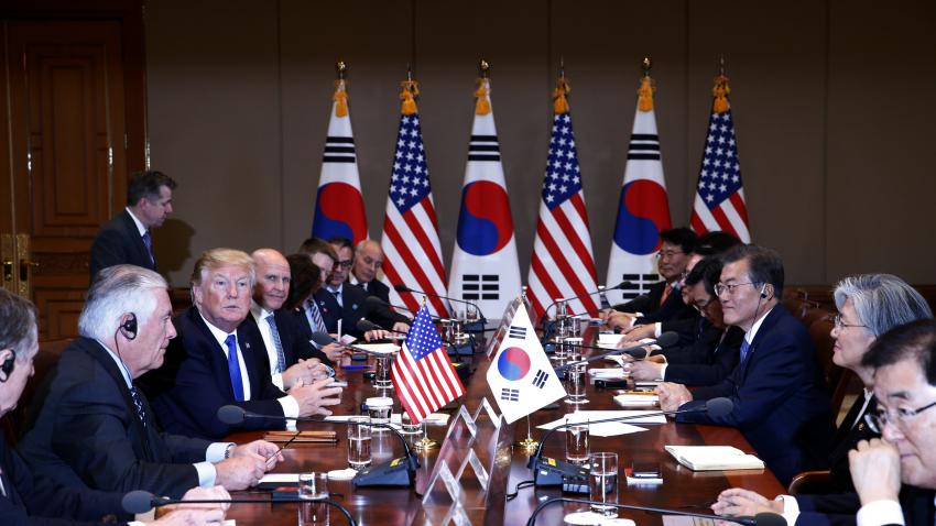 Σημαντική επίσκεψη του Ντόναλτ Τραμπ στη Νότιο Κορέα. Παρακάθισε σε γεύμα με τον Πρόεδρο Μουν ενώ επιθεώρησε και αμερικανικά στρατεύματα που εδρεύουν στη χώρα. Τις συζητήσεις απασχολεί η κρίση με τη Β. Κορέα. Την ίδια ώρα τρία αεροπλανοφόρα των ΗΠΑ πλέουν στην περιοχή και ετοιμάζονται να πραγματοποιήσουν ασκήσεις με την παρουσία υποβρυχίων. Συμφωνήθηκε επίσης η αγορά περισσότερων αμερικανικών όπλων από την Σεούλ.