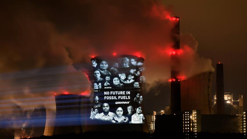 Στην πόλη Grevenbroich της Γερμανίας όπου πραγματοποιείται η Σύνοδος για τις κλιματικές αλλαγές, η Green Peace χτύπησε ξανά. Χρησιμοποιώντας ένα προτζέκτορα ο οποίος εξέπεμπε εικόνα σε φουγάρα εργοστασίου παραγωγής ενέργειας, στέλνει το μήνυμα της κατά της χρήσης συμβατικών καυσίμων.