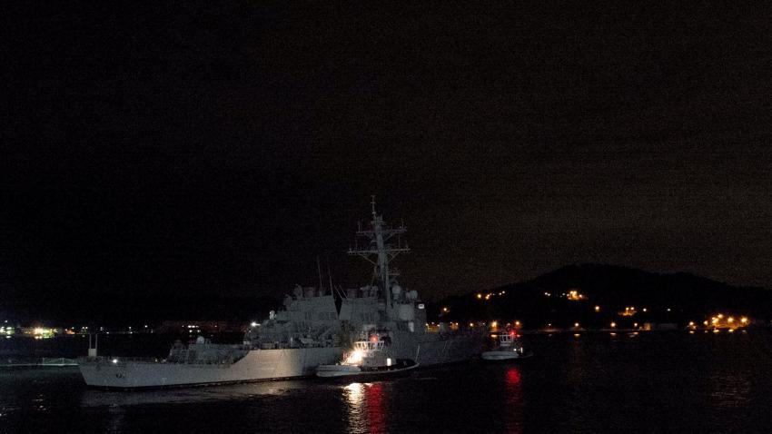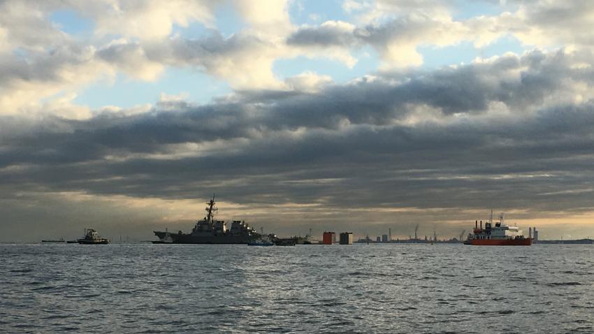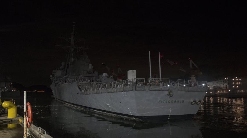 Το USS Fitzgerald το οποίο υπέστη ζημιές μετά από σύγκρουση που είχε ανοιχτά της Ιαπωνίας, αναχωρεί για να επιστρέψει στις ΗΠΑ μετά τις επιδιορθώσεις που έγιναν.