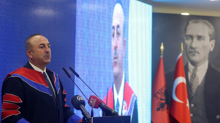O Mεβλούτ Τσαβούσογλου ο οποίος πραγματοποιεί επίσκεψη στην Αλβανία, ανάχθηκε σε επίτιμο διδάκτορα Πανεπιστημίου.