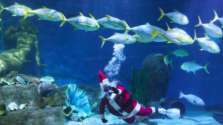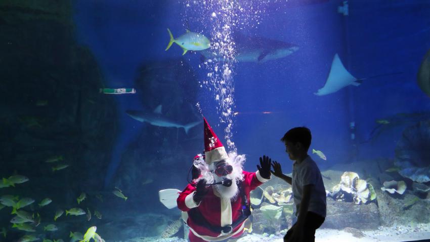 Στην Αυστραλία ένας Άγιος Βασίλης μας χαιρετά από τον βυθό ενυδρείου στη Μελβούρνη.