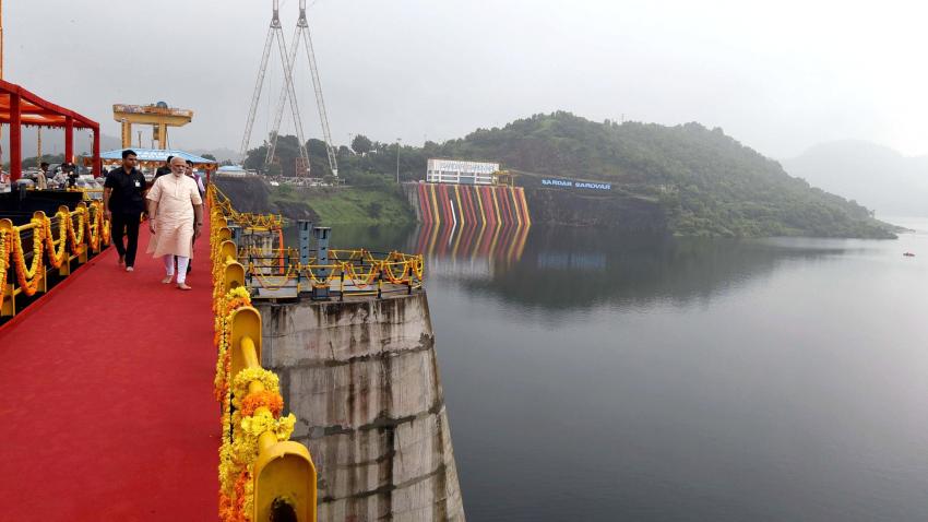 O Πρωθυπουργός της Ινδίας στα εγκαίνια του φράγματος Sardar Sarovar. Πρόκειται για ένα στοίχημα για τη χώρα που πέρασε από μεγάλες περιπέτειες 60 ετών μέχρι να κατασκευαστεί. Η παγκόσμια τράπεζα αρνείτο να χρηματοδοτήσει το έργο για δεκαετίες, με επιχείρημα ότι θα προκαλούσε ζημιά για το περιβάλλον. Περήφανος ο Πρωθυπουργός της χώρας, δηλώνει πως τελικά τα κατάφεραν, χωρίς τη χρηματοδότηση.