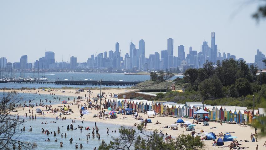 Στη Μελβούρνη, είναι καλοκαίρι και η θερμοκρασία αγγίζει τους 40 βαθμούς κελσίου. Ο κόσμος στις παραλίες.