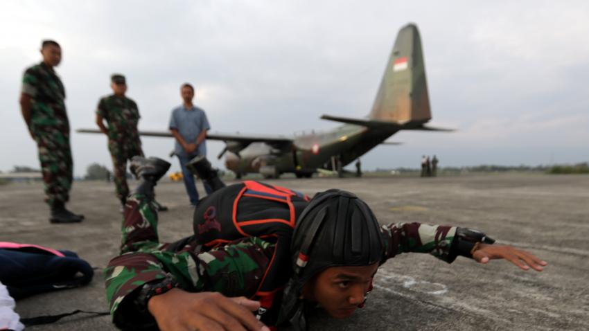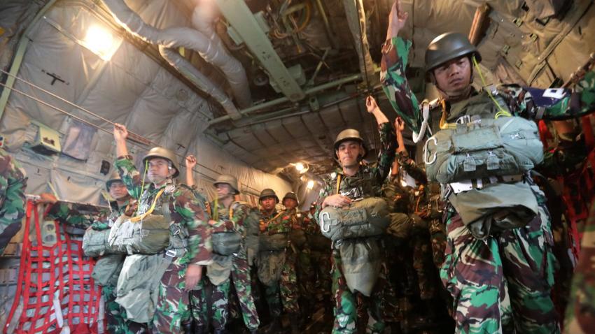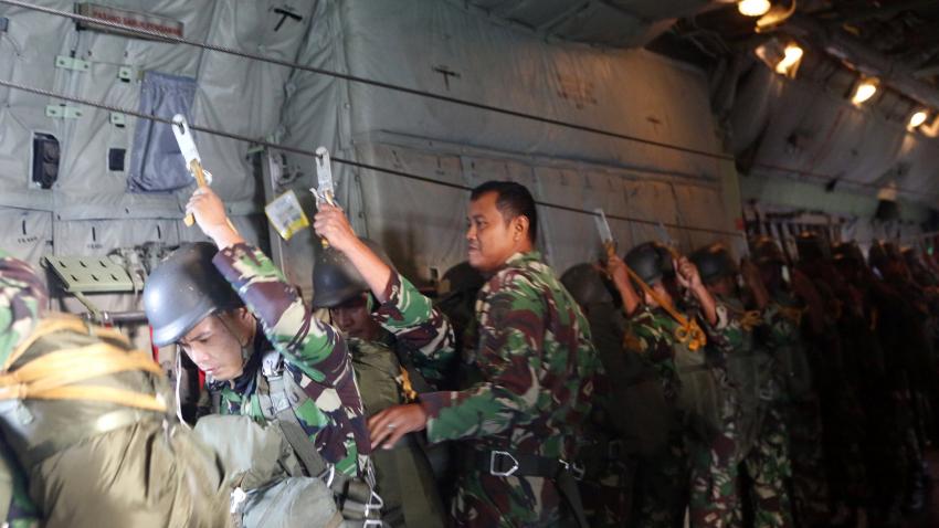 Ο στρατός της Ινδονησίας πραγματοποιεί ασκήσεις με αλεξιπτωτιστές.