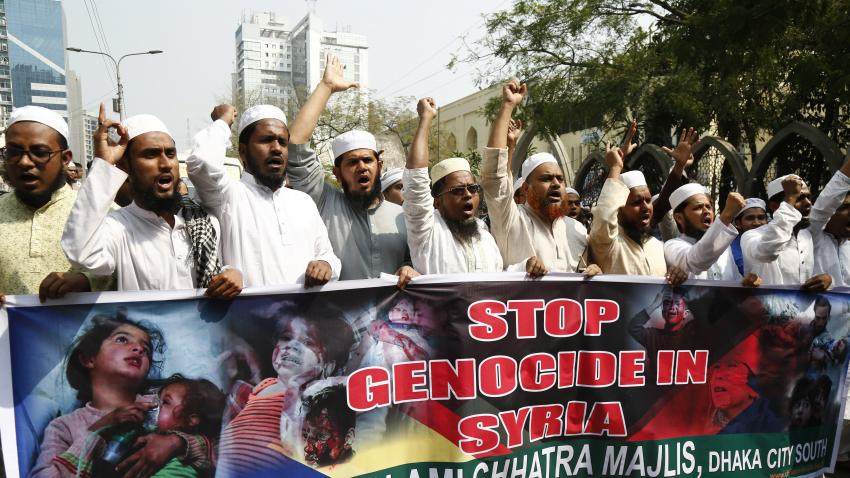 Χιλιάδες διαδηλωτές στο Μπαγκλαντές συγκεντρώθηκαν και βροντοφώναξαν υπέρ του τερματισμού της βίας στην Ανατολική Γούτα της Συρίας.