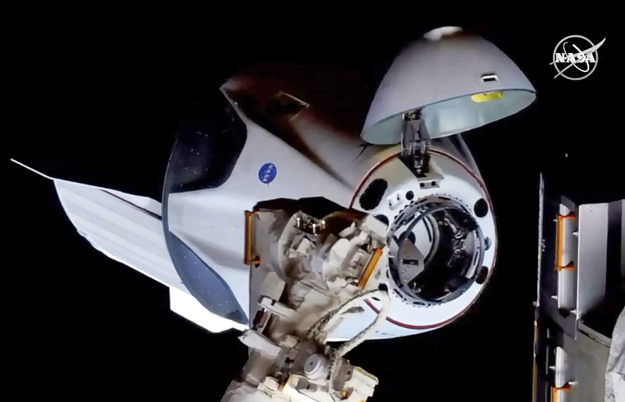 Με επιτυχία στέθηκε η δεύτερη φάση της ιστορικής επανδρωμένης αποστολής της NASA και της ιδιωτικής εταιρείας SpaceX στον Διεθνή Διαστημικό σταθμό. Η κάψουλα Crew Dragon στην οποία επέβαιναν οι Αμερικανοί αστροναύτες Μπομπ Μπένκερ και Νταγκ Χάρλι προσδέθηκε λίγο πριν τις 17.30 το απόγευμα στο Διεθνή Διαστημικό Σταθμό.