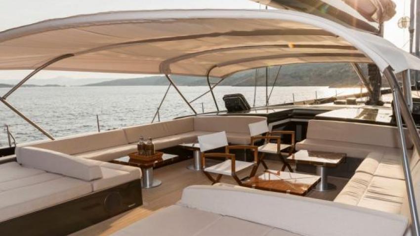 Πρόκειται για ένα πολυτελές sailing yacht το οποίο μάλιστα κέρδισε τους θαλάσσιους αγώνες τους οποίους είχε διοργανώσει το brand Loro Piana. (Όλοι γνωρίζουμε τον εμβληματικό ιταλικό οίκο με τα υψηλής ποιότητας κασμιρένια ρούχα, κουβέρτες και καλύμματα κάποια από τα οποία -σε γαλάζιο χρώμα- βρίσκονται σε φημισμένα beach bars της Μυκόνου όπως το “Nammos”).