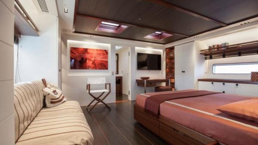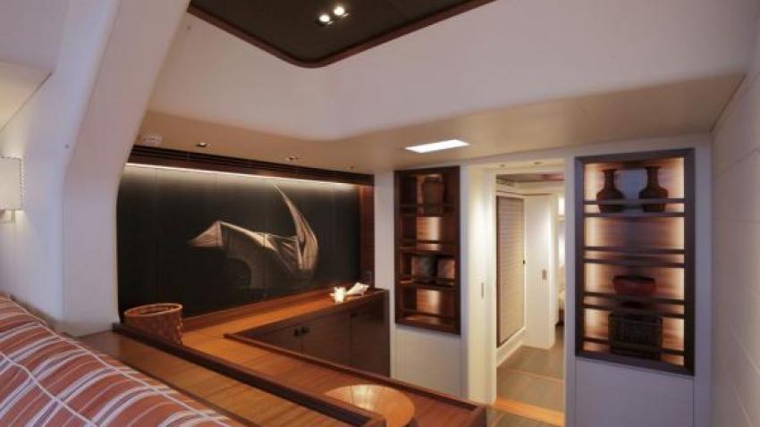 Τα μοντέρνα έπιπλα όπως οι καρέκλες Foresti & Suardi (ξύλινες με ριγέ ύφασμα), τα αντικείμενα από δέρμα (όπως οι θήκες για βιβλία και περιοδικά του Armani Casa), οι ντουλάπες της Paola Navone, τα τραπεζάκια του Ralph Lauren, οι λάμπες από ξύλο με λευκά καπέλλα του Pomeo Sozzi κάνουν το εσωτερικό του σκάφους να είναι υψηλής αισθητικής.