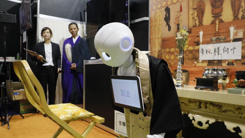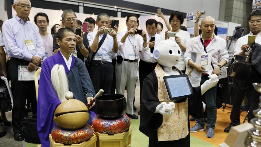 Ιαπωνία. Ένα ρομπότ με το όνομα Peper, τελεί κηδεία, με τη βοήθεια ενός ιερέα. Το ρομπότ τραγουδά προσευχές, ενώ σε άλλες περιπτώσεις χρησιμοποιήθηκε ως οικογενειακό ρομπότ, ως νοσοκόμος αλλά και υπάλληλος ταμείου τραπεζών. Μάλιστα η εταιρεία θα χρεώνει περίπου 450 ευρώ για την τέλεση κηδείας, ως φθηνότερη εναλλακτική επιλογή από την πρόσληψη βουδιστή ιερέα.