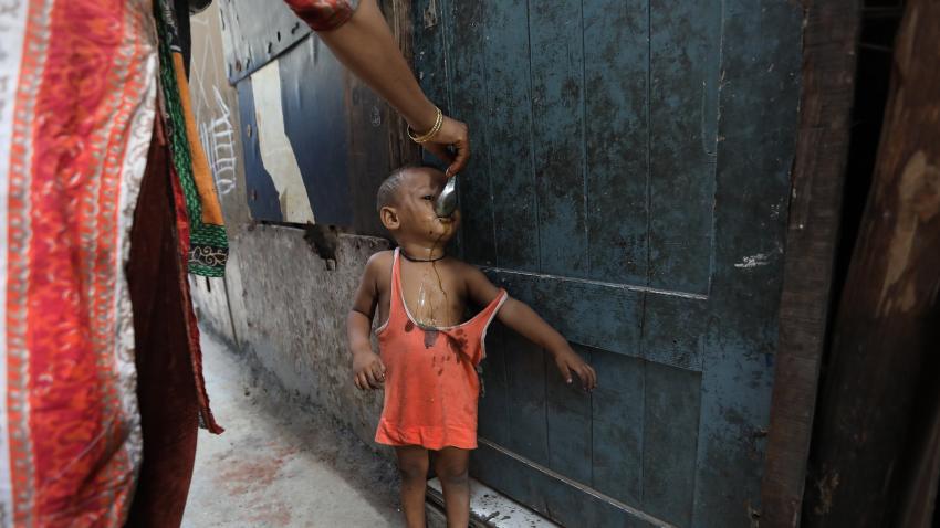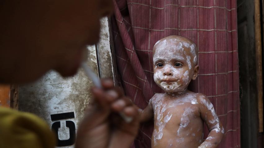 Προσφυγόπουλα από την Rohingya της Μιανμάρ σε άθλιο καταυλισμό στο Νέο Δελχί της Ινδίας. Περίπου 50 οικογένειες από την ίδια περιοχή, ζουν σε αυτούς τους πρόχειρους καταυλισμούς και εργάζονται σε διάφορες χειρονακτικές εργασίες για 5 δολάρια την ημέρα.