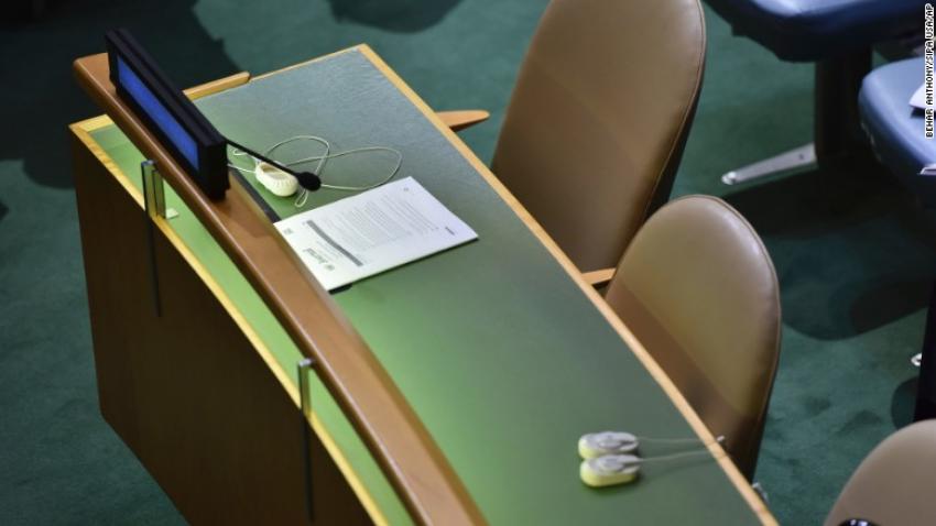 Την ώρα που ο Τραμπ αναφερόταν στον πυραυλάνθρωπο Κιμ Γιογκ Ουν, τα έδρανα των αντιπροσώπων της Β. Κορέας ήταν…άδεια.