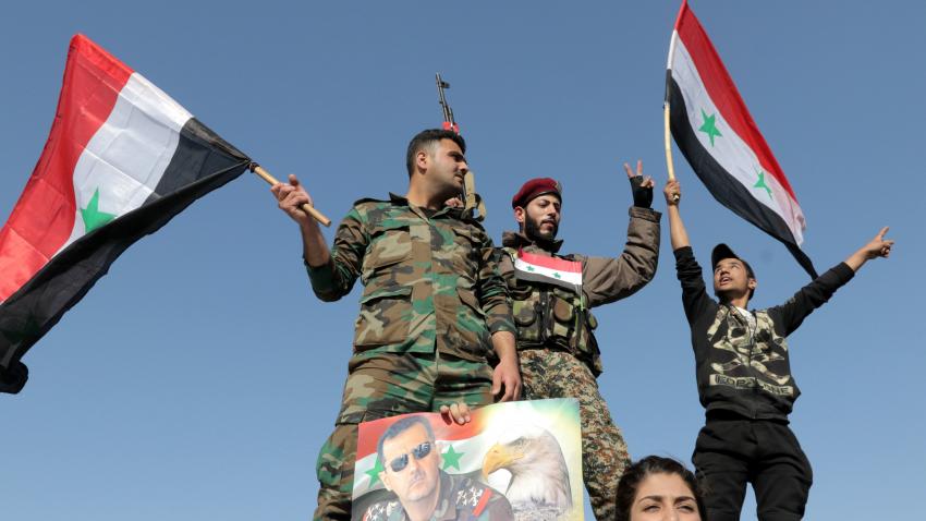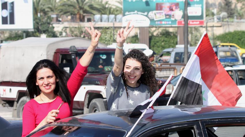 Στη Δαμασκό υποστηρικτές του Άσαντ βγήκαν στους δρόμους με σημαίες.